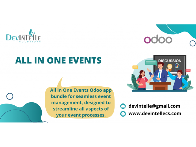All in One Events in Odoo is a complete solution to manage every part of your event from one place. Whether you are organizing workshops, conferences, webinars, training sessions, or company activities, this app helps you handle everything easily. You can manage event registration, ticketing, schedules, speakers, attendees, and payments in a smooth and organized way. It also supports reminders, event promotion, and real-time tracking so your team stays fully updated. With this app, planning and running events becomes faster, clearer, and more efficient, helping you deliver a better experience to your participants.